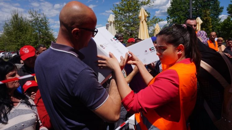 Nakon sastanka predstavnici Grada i ambasade zajednički su ispred dvorane Pendik označili početak distribucije humanitarnih i pomoć uručili pomoć pojedinim građanima. Paketi sadrže sve ono što je najpotrebnije porodicama u mjesecu ramazanu, ulje, brašno, sol, šećer ali i konzerviranu hranu.