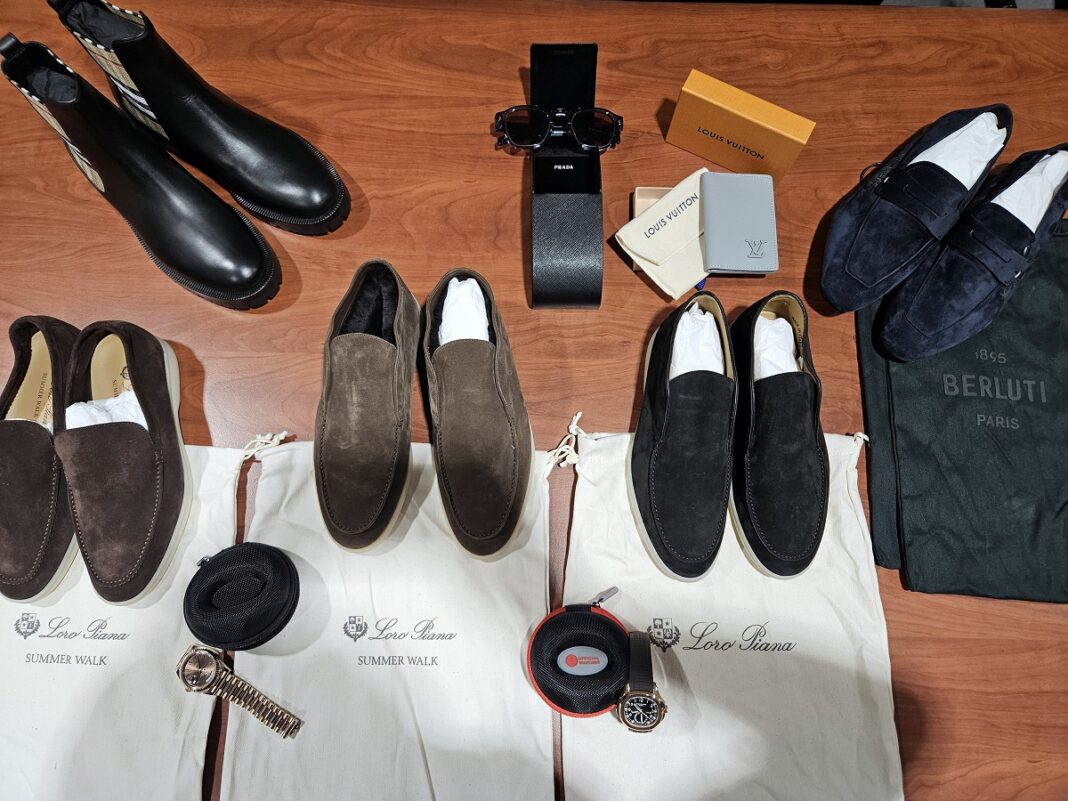 Roba koja je pronađena sastoji se od dva skupocena ručna časovnika svetski poznatih marki ”Rolex” i ”Patek Philippe”, pet pari muških cipela robnih marki ”Loro Piana”, ”Burberry” i ”Berluti”, naočare za sunce ”Prada” i organizer za kartice ”Louis Vuitton”.
