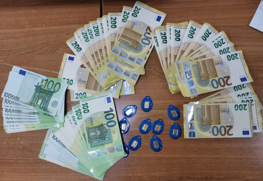U unutrašnjem džepu jakne koju je suvozač nosio na sebi, pronađeno je 40.000 evra, a u novčaniku smeštenom u spoljašnji džep 10 pločica investicionog zlata SERIF 995.0 težine jednog grama.