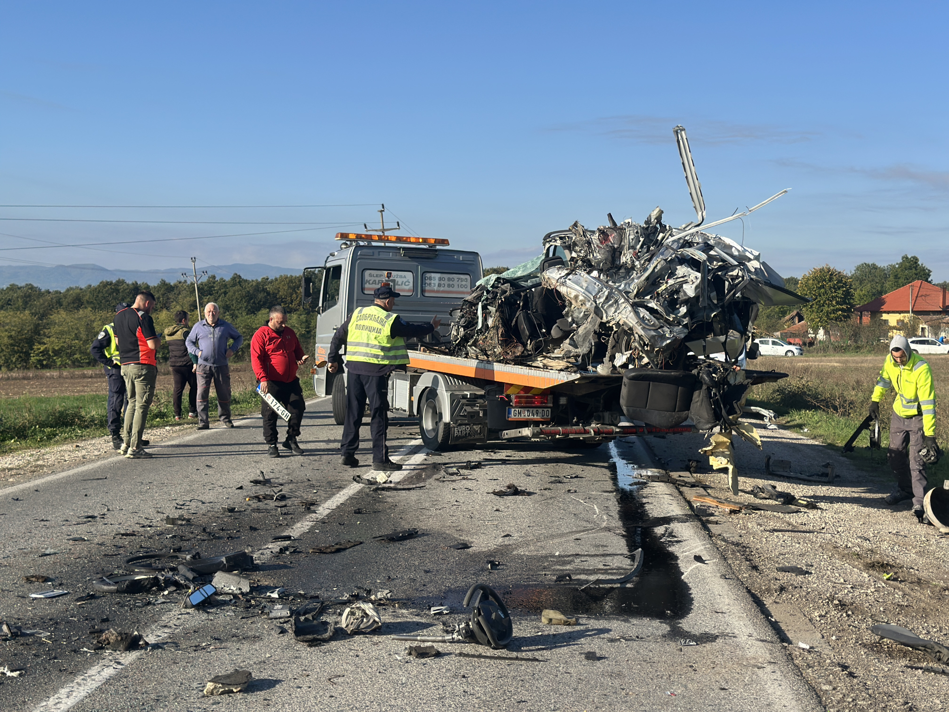 – Slike sa lica mesta su zaista jezive. Sudar je bio toliko silovit da je automobil potpuno smrsakan. Autobus je od jačine udara sleteo sa puta i udario u stub dalekovoda, takođe je popriličmo oštećen, kaže za RINU jedan od meštana.