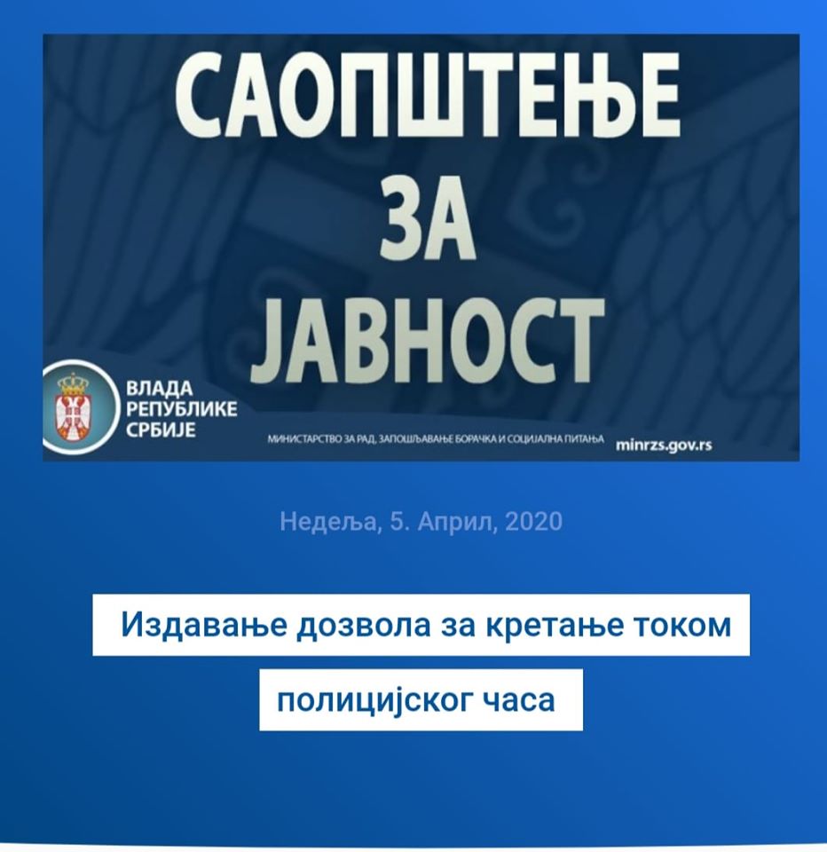 Građani kojima je potrebna dozvola za kretanje u vreme policijskog časa, za rešavanje ovog problema potrebno je da se zahtevom obrate lokalnoj samoupravi, dostave potrebna dokumenta koja potvrđuju razlog za izdavanje ove dozvole. U ovom slučaju, građani koji imaju potrebu za dobijanjem dozvole za kretanje smatraju se osobe koje pružaju pomoć u kući (usluga socijalne zaštite, ali i direktno ugovorena pomoć) i usluga socijalne zaštite – personalni asistent, kao i roditelji koji konačnom sudskom presudom regulišu viđanje deteta (preuzimanje i vraćanje deteta).