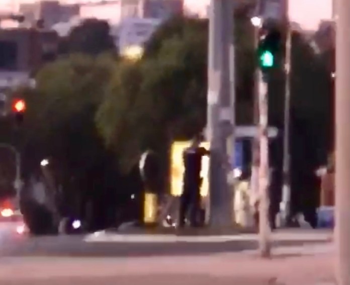 Muškarac opkoljen policijom preti pištoljem, a očevidci tvrde da je došlo do razmene vatre između njega i policije.