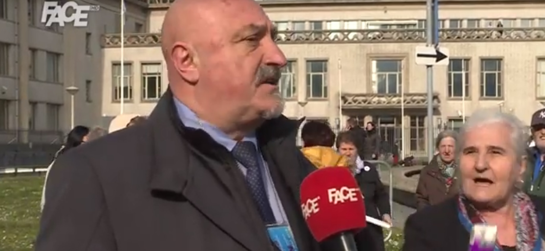 U otvorenom studiju u Hagu izjavu za FACE dao je Goran Petronijević, Karadžićev advokat. Tokom razgovora sa reporterom prekinula ih je Munira Subašić, predsjednica udruženja Majke Srebrenice te advokatu uz osmijeh dala maramice, kako bi obrisao suze, nakon konačne presude.