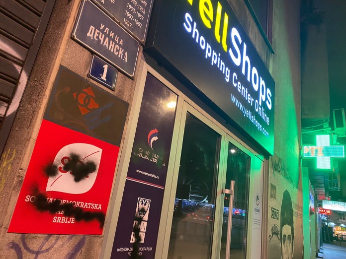 Beograd – Tabla Socijaldemokratske partije Srbije Rasima Ljajića na prostorijama stranke koje se nalaze u Dečanskoj 1 u samom centru Beograda, išarane su danas.