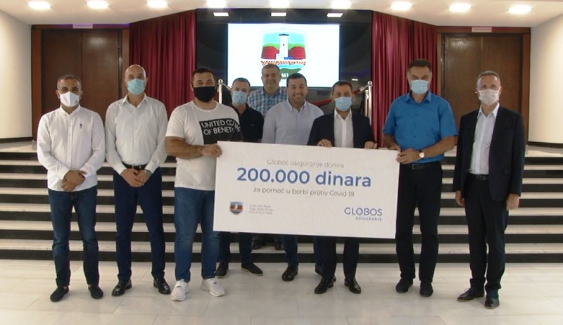 Povodom otvaranja regionalnog centra GLOBOS OSIGURANJA Gradskoj upravi donirano je 200 hiljada dinara. Sredstva će biti uplaćena na namenski žiro račun za borbu protiv korona virusa.