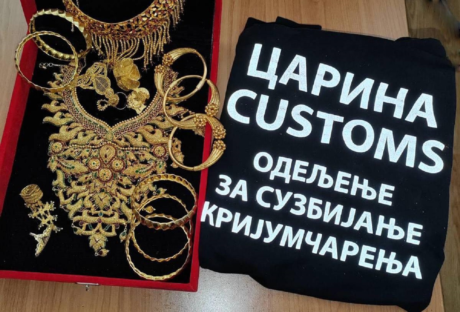 Reč je o dve masivne zlatne ogrlice, devet narukvica, četiri prstena, jednim minđušama i jednom privesku, ukupne težine 464 grama, koje vozač kombija nije prijavio prilikom prelaska granice.