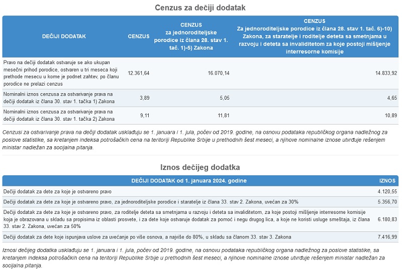 Ovi iznosi i pravila definisana su Zakonom o finansijskoj podršci porodici sa decom.