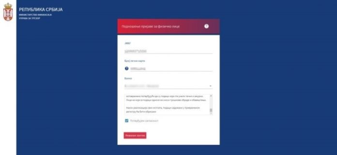 Kada to odradite potom unesite vaš JMBG, broj lične karte i odaberite banku u kojoj imate otvoren tekući račun. Broj računa nije potrebno unositi.