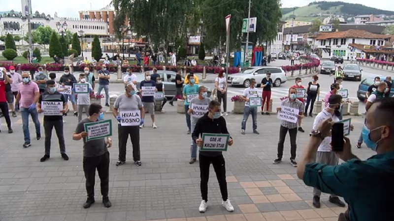 Grupa od nekoliko desetina građana okupila se danas ispred Gradske uprave u znak protesta zbog aktuelnog stanja u zdravstvenom sistemu, velikog broja obolelih i umrlih od kovida, ali i u znak protesta protiv lokalne vlasti.