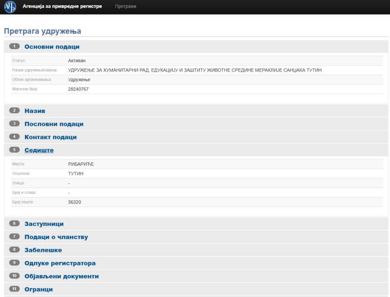 Na sajtu APR-a evidentirana je izjava o nektivnosti, a na drugim portalima koji registruju informacije o radu udruženja vidimo rezultate poslovanja i da su računi duže vreme bili neaktivni.