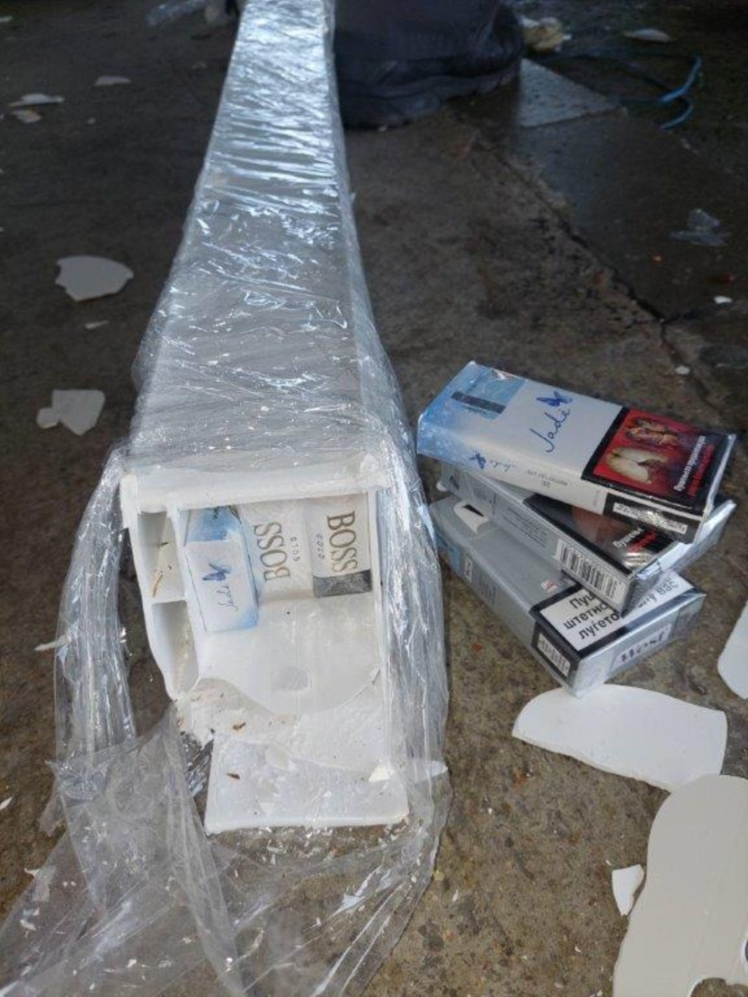 Potvrdivši da je unutrašnjost prozora ispunjena neprijavljenom robom, okvir je otvoren, a iz njega su počele da ispadaju paklice cigareta raznih robnih marki.