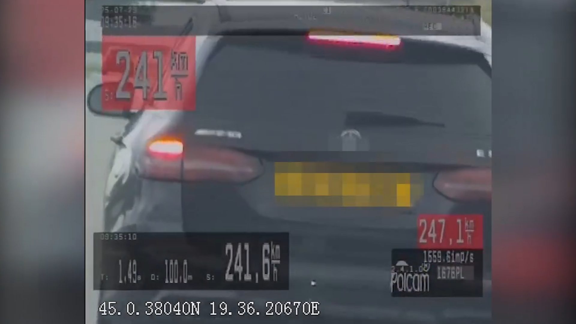 Kako je saopštio MUP, policija je u 9.35 časova zaustavila tridesetčetvorogodišnjeg državljanina Velike Britanije koji je automobilom marke „mercedes“ vozio brzinom od 241,6 kilometara na čas, na delu puta gde je ograničenje brzine 130 kilometara na čas.