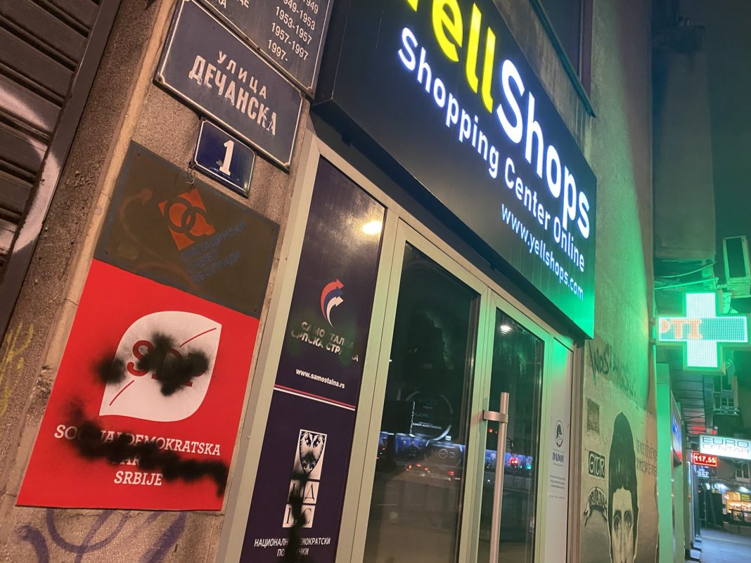 Beograd – Tabla Socijaldemokratske partije Srbije Rasima Ljajića na prostorijama stranke koje se nalaze u Dečanskoj 1 u samom centru Beograda, išarane su danas.