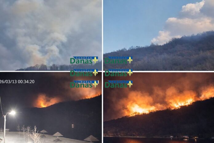 - Veliki šumski požar izbio je u rejonu sela Starčeviće preko puta Pazarske plaže na Gazivodskom jezeru. Vatra se širi prema kućama, a jak vjetar otežava gašenje. Vatrogasne ekipe su na terenu.
