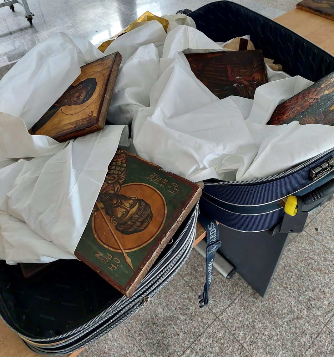 Međutim, tokom detaljnog pregleda, u gepeku vozila je pronađen i veliki kofer sa sedam starih ikona, uvijenih u belo platno.